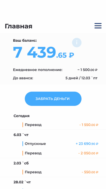 С помощью мобильного приложения у сотрудника компании появляется возможность распоряжаться деньгами, заработанными на данный момент, не дожидаясь дня заработной платы и не используя кредиты.
